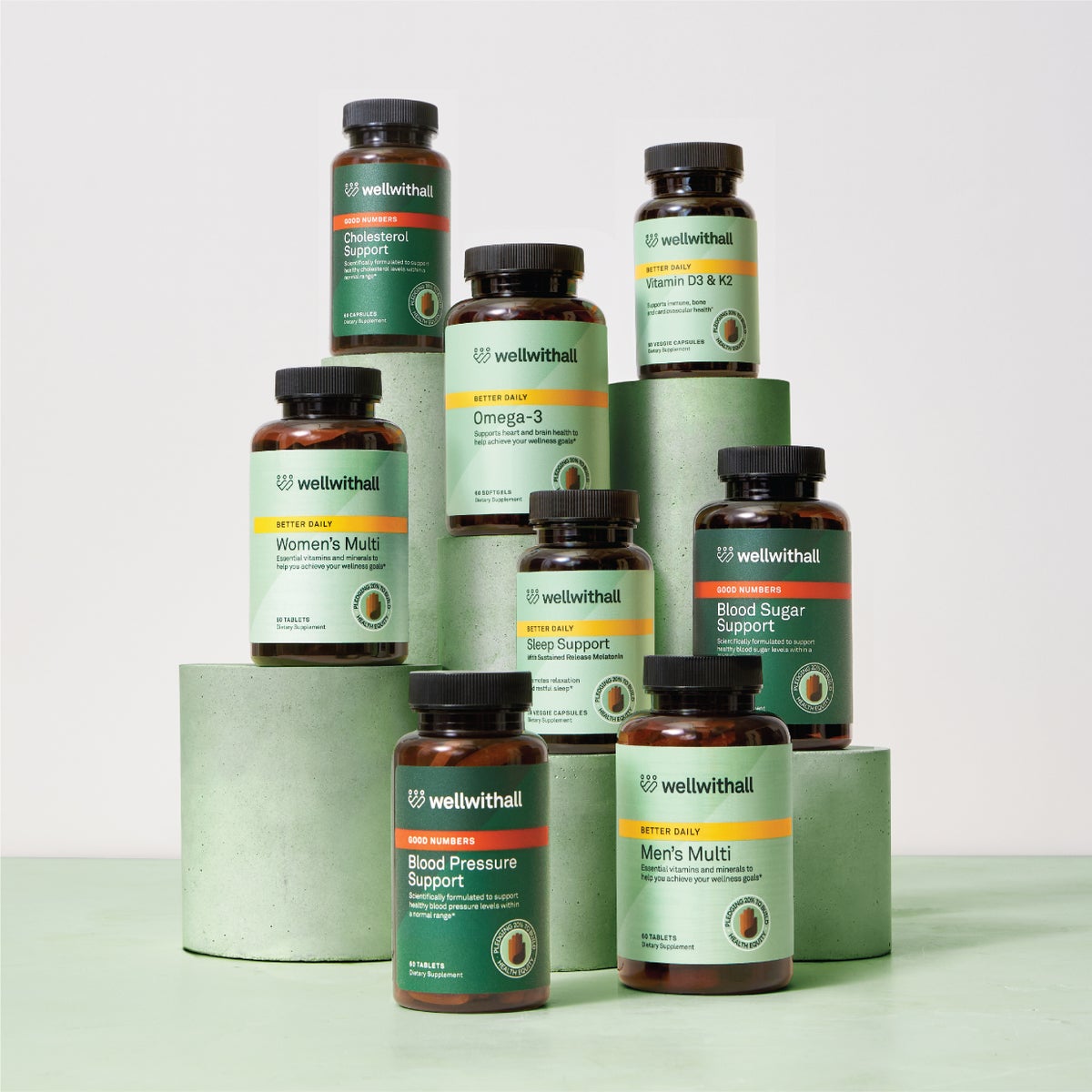 “WellWithAll launched two product collections, both inspired by the wellness everyone deserves. With heart health disproportionately impacting communities of color, the first collection is Good Numbers — condition-specific supplements that support blood pressure, blood sugar, and cholesterol. Each of these can be measured, so we named this subgroup Good Numbers to encourage individuals to know their numbers and to take an active role in their health,” Martin says. “The second collection, Better Daily, focuses on everyday wellness — aimed to support simple daily commitments to a healthier lifestyle with multivitamins, vitamin D3+K2, and omega-3 fatty acids.”