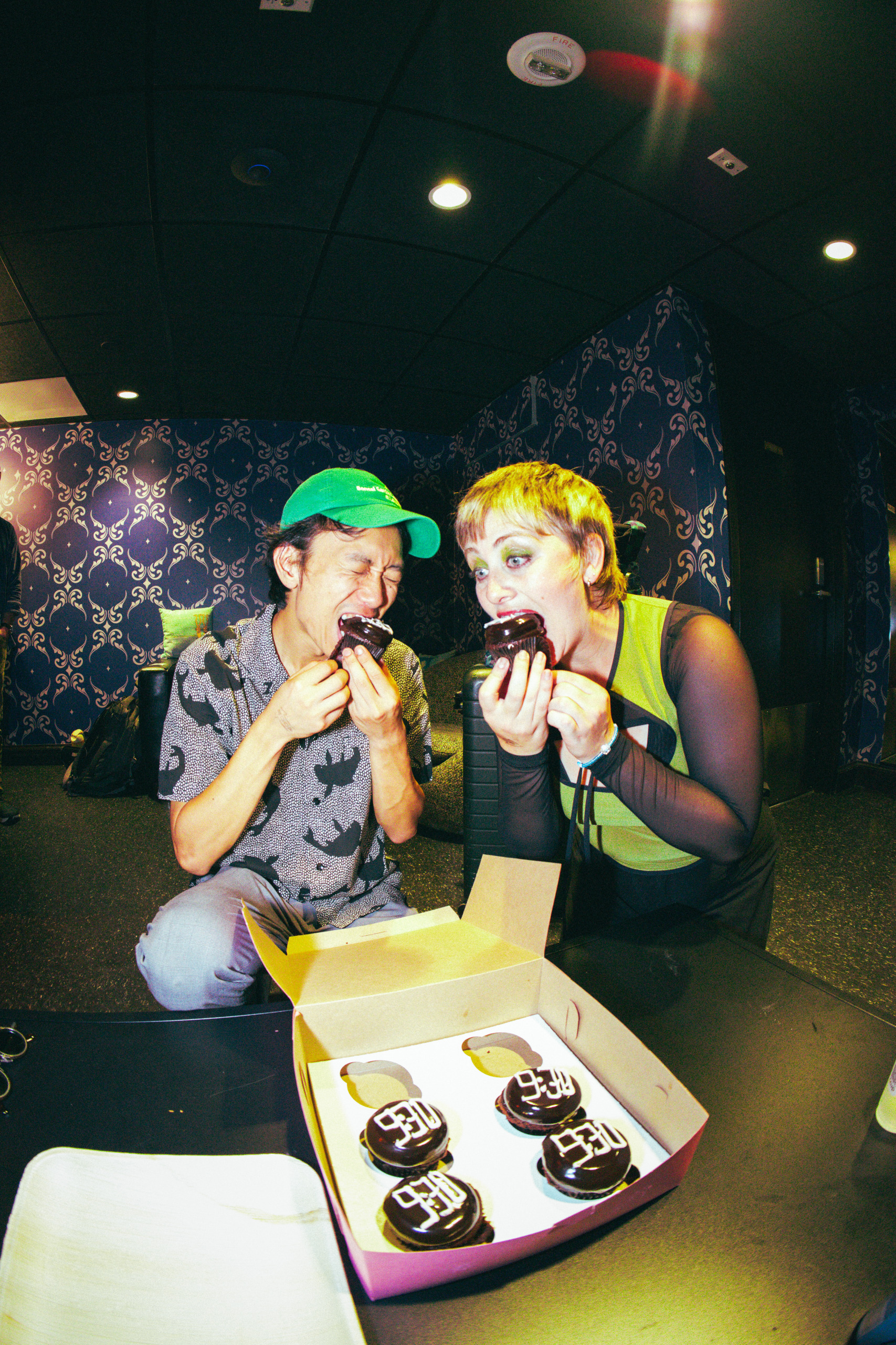 Noah and Sedona eating 9:30 Club cupcakes after the first show on tour. / Rachel Briggs
