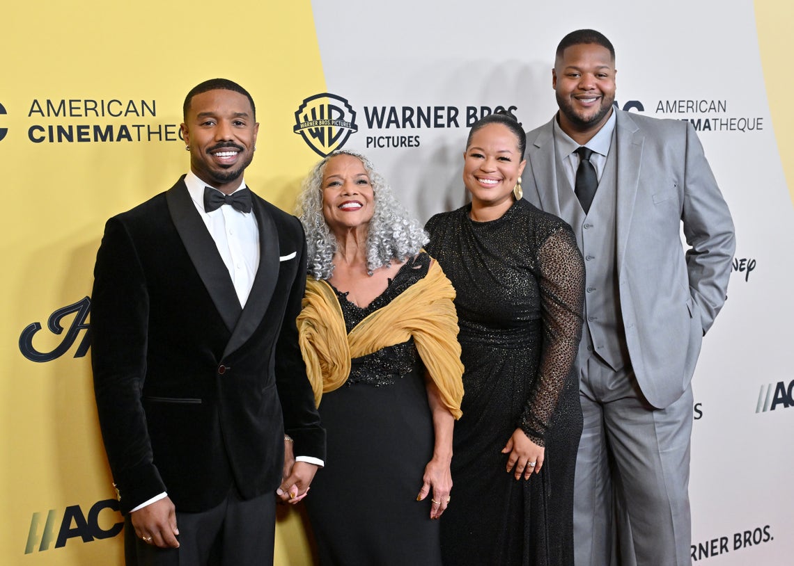 Michael B. Jordan, Donna Jordan, Jamila Jordan-Theus, and Khalid Jordan attend the 39th American Cinematheque Award Ceremony Honoring Michael B. Jordan at The Beverly Hilton on November 20, 2025 in Beverly Hills, California