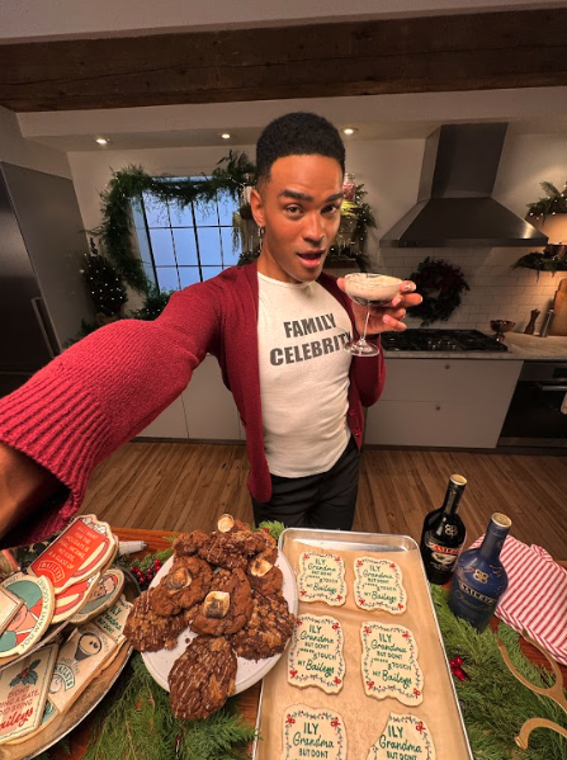 Actor and podcast host Owen Thiele dunking the halls behind the scenes for his latest holiday campaign with Baileys Irish Cream Liqueur.