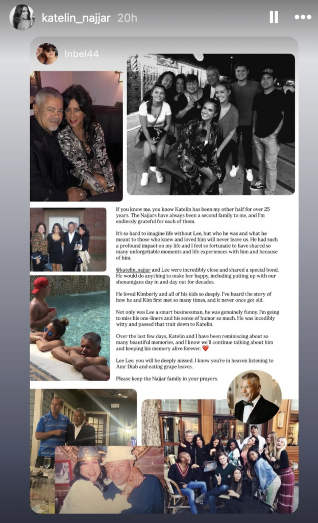 “I’ve heard the story of how he and Kim first met so many times and it never once got old,” they continued. “Not only was Lee a smart businessman, he was genuinely funny. I’m going to miss his one-liners and his sense of humor so much. He was incredibly witty and passed that trait down to Katelin.”